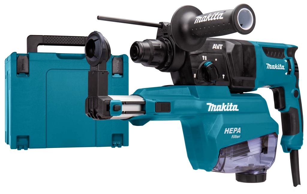 Makita HR2653J 230 V Marteau combiné avec unité d’extraction de la poussière dans la Mbox