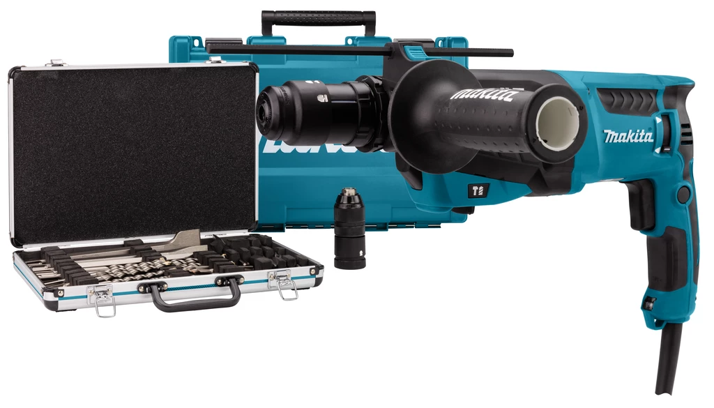 Makita HR2631FT12 Perfo-burineur à tête interchangeable + jeu de forets 17 pcs
