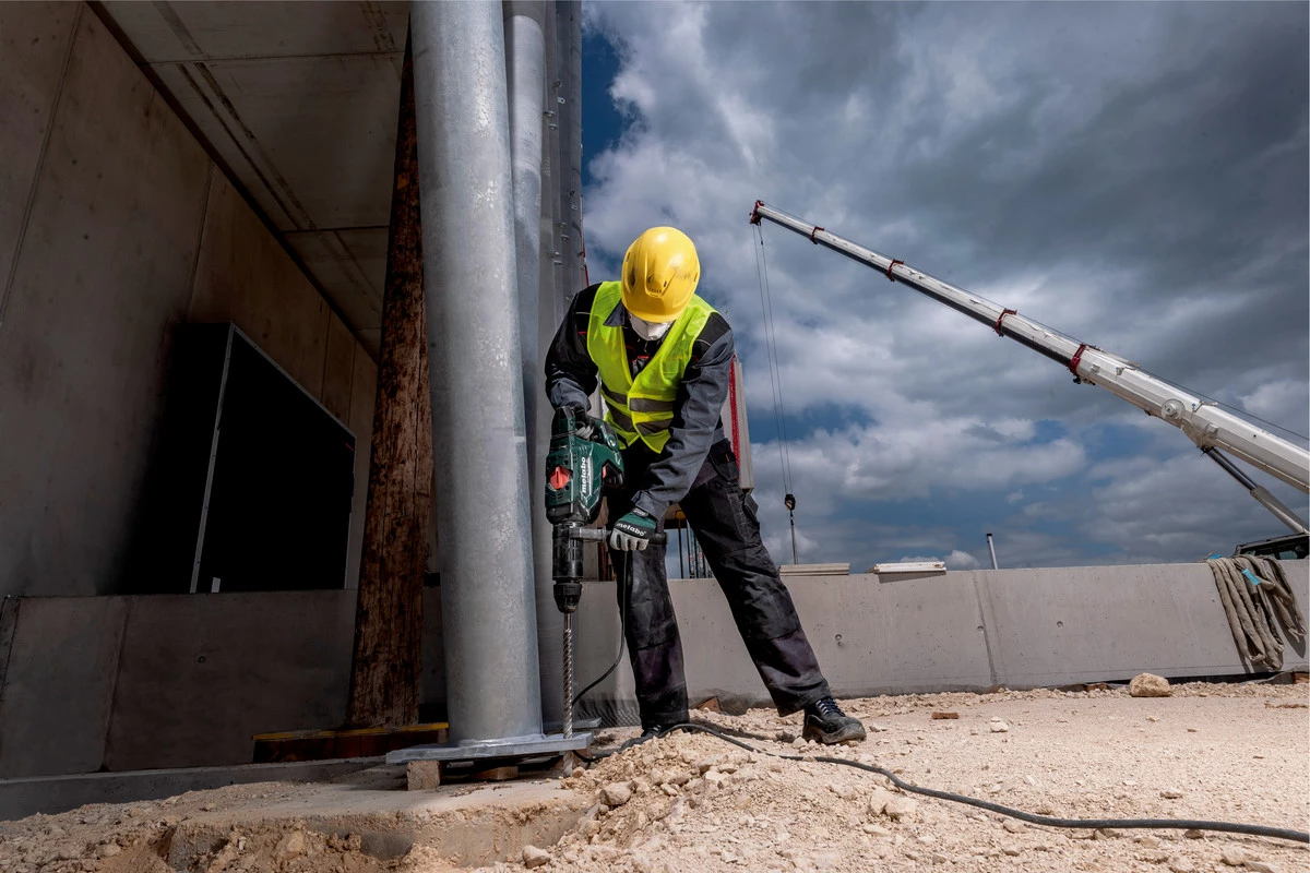 - Metabo VibraTech (MVT) avec double amortissement : la poignée découplée et la masse anti-oscillation absorbant les chocs réduisent activement les vibrations pour un travail sans danger pour la santé, même en utilisation continue.